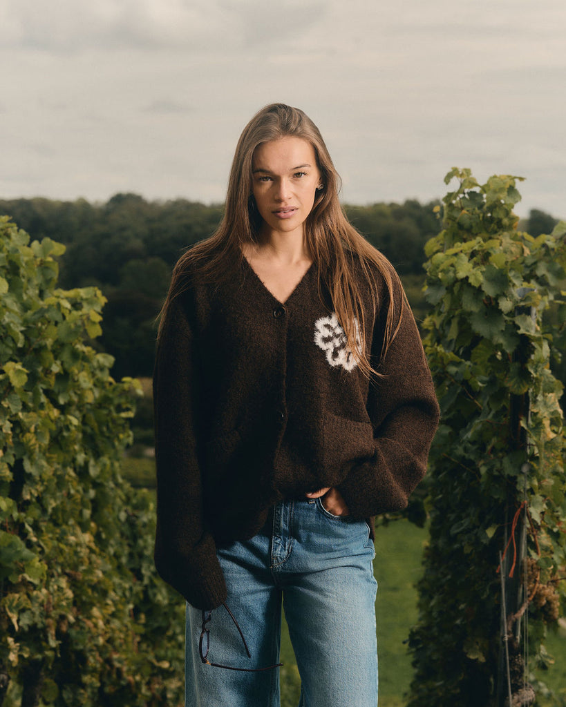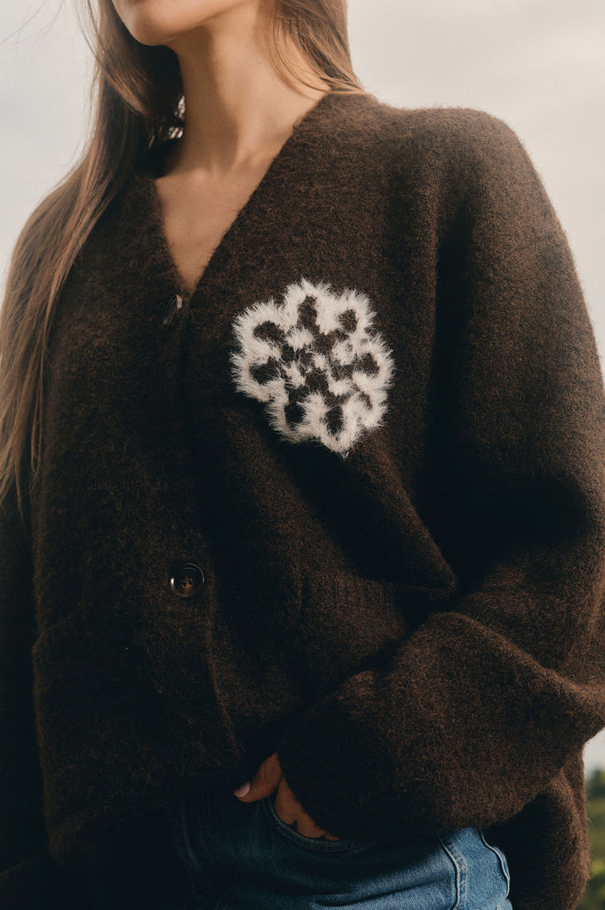 BRUSHED KNITTED CARDIGAN - CHOCOLATE